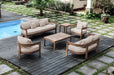Water-resistant fabric and a natural acacia wood frame make the Newport patio sofa a standout for any outdoor setting. Built with quick-drying foam and thermowood treatment, it's designed to handle the elements without compromising style. Perfect for lounging, this contemporary piece blends casual comfort with sleek sophistication.