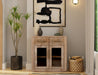 2 Drawer & 2 Glass Door Server. This beautiful Balam Collection, is both stylish and functional. It features two glass-paneled doors, making it perfect for showcasing your cherished items. The collection design combines modern elegance with practicality, making it a versatile addition to any room.