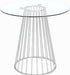 Add a bold touch to your dining area with this chic Gio counter height table. Featuring a round, clear tempered glass tabletop and a polished metal base with a wired contemporary design, this dining table transforms your dining space into a stylish haven.