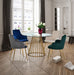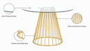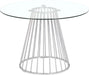 Add a bold touch to your dining area with this chic Gio dining table. Featuring a round, clear tempered glass tabletop and a polished metal base with a wired contemporary design, this dining table transforms your dining space into a stylish haven.