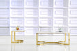 The London table, by Meridian Furniture. Featuring a beautiful contemporary design. Constructed of gold finished stainless steel and solid stone top, it's guaranteed to be the highlight of any room.