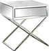 Get organized while keeping your room's details on point with this Lynn mirrored side table. This pretty side table features a single drawer for holding everything from remotes to reading material. The X-style legs add a modern aesthetic, and their chromed finish adds sparkle and shine to the design. A mirrored finish completes the look, ensuring this table fits well in modern decor themes.