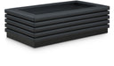 Put emphasis on style when you add this Rory coffee table to your current setup. This handsome table features a stacked look with soft vegan leather accents against a finish oak veneer. The look of leather and oak forms an exciting contrast that's not lost on guests or others. A lip across the top of the table keeps things from sliding off, and its retangle shape makes it ideal for adding alongside a corner sectional or other large seating group.