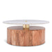 Bring woodsy inspiration to life with this Stonewood coffee table. A wooden base made from solid acacia wood gives this handsome table a rustic yet midcentury feel that's well at home in a variety of decor settings. The genuine marble top and brass-finished pedestal and trim lend the table just a touch of modernity to allow it to fit in wherever you choose to use it.