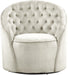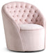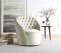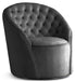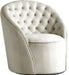 Give your living space a sophisticated makeover with this Alessio Accent Chair from Meridian Furniture. This swivel base accent chair has luxurious velvet upholstery that provides you with a soft, comfortable place to sit while you cozy up with your favorite book or curl up in front of your favorite TV show or movie. Deep button tufting on the inner back adds to its contemporary design, making it the perfect addition to any room in your home.
