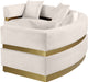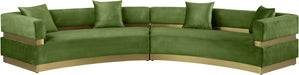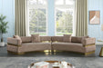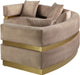 Round up the gang and get comfortable while seated on this Belsa velvet sectional. This uber contemporary sectional couch is just what you need for entertaining and hanging out with the whole gang. Its stunningly luxurious velvet upholstery is sleek to the touch and easy to care for and maintain, so the sofa retains its lovely look longer. Accents of brushed gold stainless steel on the base and back give the sectional a touch of glam.