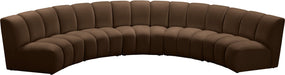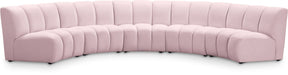 Create a seating group that works for every possible situation with this Infinity modular 5-piece sectional and other pieces in the Infinity collection. Upholstered in soft velvet material that feels great against the skin and offers long-wearing beauty, this piece fits with other Infinity items for an infinite number of combinations that get your seating requirements just right but that look just as nice when used on their own.