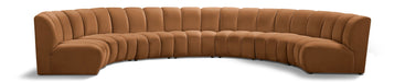 Create a seating group that works for every possible situation with this Infinity modular 7-piece sectional and other pieces in the Infinity collection. Upholstered in soft Saddle velvet material that feels great against the skin and offers long-wearing beauty, this piece fits with other Infinity items for an infinite number of combinations that get your seating requirements just right but that look just as nice when used on their own.