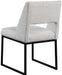 Give your dining area a contemporary makeover with this Jayce cream boucle fabric dining chair. Featuring a matte iron base and rich boucle fabric, this dining chair is both sturdy and cozy. Its contemporary design is ideal for any modern home, and its neutral color matches any color dining table. Its plush boucle upholstery provides you with a comfortable pace to sit, and its open rectangular back is stylish while adding spine support.