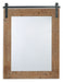 Getting the casual yet complete look you love is a breeze with this accent mirror. With its rough sawn wood and metal faux barn door track, it adds a touch of warmth to any space.
