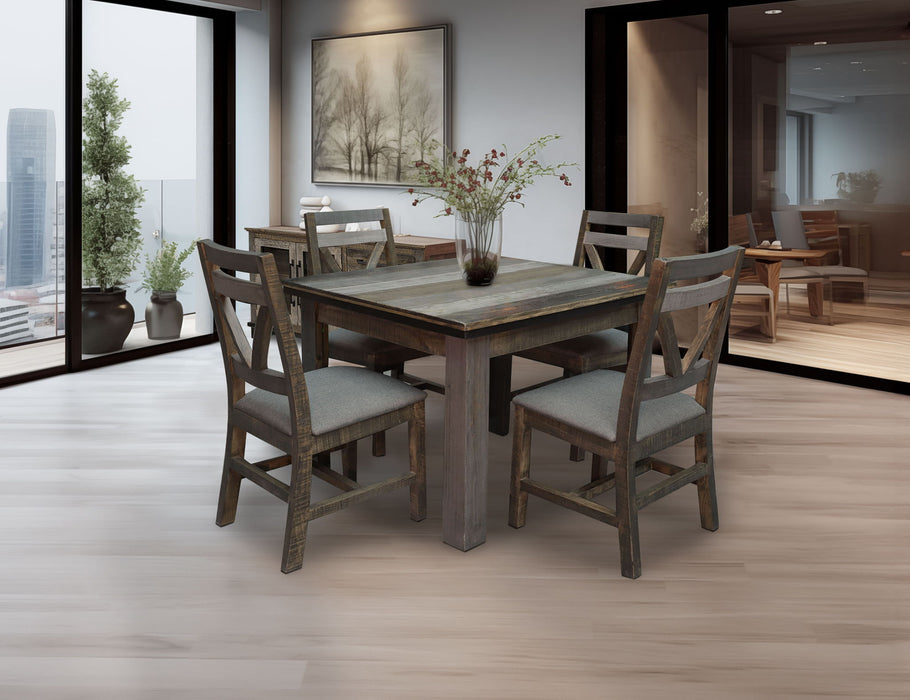 Upholstered Seat Wooden Chair. The charm of our Loft Brown dining chair lies in its clean lines, expertly crafted from solid pine wood, and upholstered in elegant grey fabric. This classically designed chair with its uncluttered aesthetic serves as the perfect complement to any space.