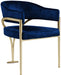 Give your dining area a show-stopping new look when you bring home one or more of these Madelyn velvet dining chairs. The Madelyn chair is all about comfort and style with its barrel-back design and its sophisticated lines. Upholstered in luxurious beige velvet that's inviting to the skin and super soft to the touch, this chair features an iron metal frame for durability and lasting use in your busy home. The brushed brass finish adds a final modish touch to this lovely dining chair.
