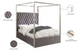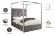Dream big in the Porter velvet canopy bed. The headboard is tufted for added elegance, and the bed comes with a canopy, adding to its overall elegance and grandeur. velvet fabric used on the sides and headboard gives it a luxe vibe, and the headboard is heavily padded, making it an ideal backrest for reading or watching TV.