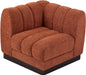 The Quinn Corner Chair is a stunning piece crafted in a rich and luxurious chenille fabric. Its awe-inspiring design and exceptional quality make it a perfect addition to any space, whether it's a living room, bedroom, or office. The chair's plush cushioning and sturdy frame provide both comfort and durability, ensuring that it will be a favorite for years to come. Whether you're looking for a statement piece or simply a comfortable seating option, the Quinn corner chair is an excellent choice.