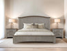 2 Drawer, Nightstand. The Ridge nightstand features two spacious drawers, offering plenty of storage for all your bedroom essentials. It features sleek metal handles that enhance its modern aesthetic. Made from Melina and poplar wood, this collection guarantees durability and timeless appeal. The elegant light gray finish and brown tops blend seamlessly with any décor style. Additionally, the channeled design adds a touch of sophistication and texture to the furniture.