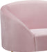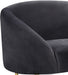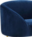Get comfy while remaining chic in this elegant Ritz velvet chair. Plush-colored upholstery provides a soft texture that is pleasing to the senses, while its curved design offers a contemporary touch to your home furnishing. metal legs complement the chair's sophisticated color, creating a gallant piece anyone would be proud to display in their home.
