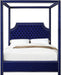 Ensure that every night's sleep is a dreamy escape with this Rowan Bed as the centerpiece of your bedroom sanctuary. This bed features a velvet-clad canopy that beckons you to rest like royalty. The deeply detailed tufting on the scalloped headboard makes for a sumptuous presentation, and the nail heads add to the luxe look of this exquisite bed.