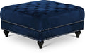 Take a load off when you prop your feet up on this Sabrina velvet ottoman. This sumptuously elegant ottoman serves not only as a luxurious foot rest, but doubles as a seat when you have extra company over. The velvet upholstery is rich and chic, and the addition of nail head trim adds to its sophisticated feel. Wooden legs with a turned design provide sturdy support for the unit, ensuring its long-lasting beauty and performance. Buy it on its own or as part of the Sabrina collection for a beautiful, cohesive look.