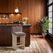 Sculptural curves and plush chenille transform the Shaw counter stool into a show-stopping statement piece. Anchored by a natural oak veneer base, this art deco-inspired stool radiates bold sophistication. Elevate your dining space with a striking blend of comfort and couture-worthy style.