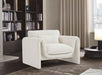 Impress family and guests alike with this Stylus boucle fabric chair. This modish chair oozes contemporary panache with its curved arms and unexpected design elements. Thickly padded seat and back cushions cradle your body in supportive comfort while the rich boucle fabric caresses the skin and leaves you feeling relax and recharged. A wood frame ensures that the chair withstands the rigors of daily use without losing its lovely yet contemporary look.