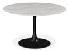 Set the stage for small, intimate dinners for just the two of you with this Tulip Dining Table. Its cozy yet chic design is ideal for small spaces, featuring a timeless pedestal style that offers ample legroom for comfortable dining. This elegant and sleek table comes in a rich finish, making it a great addition to modern dining spaces and eat-in kitchens. Constructed with solid wood, oak veneer, and natural wood grain variation, it has a substantial feel, while its midcentury modern design elements ensure it stands out.