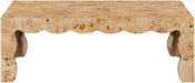 Sculptural curves and a mesmerizing burl veneer make the Vassa coffee table a standout piece with art deco appeal. Swirls of natural wood grain dance across the surface, creating an eye-catching focal point that exudes warmth and sophistication. Perfect for anchoring a living room with bold, artistic flair.