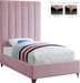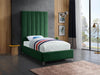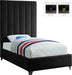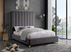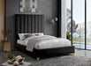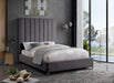 Take the look of your bedroom to new decorative heights with this ultra-modern Via upholstered bed. Sleek velvet upholstery gives this bed a true upscale feel and epitomizes fine living while channel tufting along the headboard keeps the padded material inside plump and aloft, so it cradles your body while you sit up in bed to watch TV or read. Metal legs bring this platform bed up off the floor, allowing clearance below for cleaning and adding to its svelte contemporary profile.