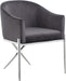 Spread elegance and modernity to your dining room with this Xavier velvet dining chair from Meridian Furniture. This beautiful chair features a simple barrel seat with a plush cushion and back, ensuring that every meal is a comfortable one. The steel legs provide durable support while you sit, and an "X" leg in the back lends the chair an uber-modern vibe. finishing on the base is sleek and chic, giving this chair a contemporary edge that's well at home in any modern dining room. Sleek velvet upholstery is durable and tough yet soft against your body, elevating meal times to a luxurious experience.