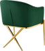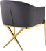Spread elegance and modernity to your dining room with this Xavier velvet dining chair from Meridian Furniture. This beautiful chair features a simple barrel seat with a plush cushion and back, ensuring that every meal is a comfortable one. The steel legs provide durable support while you sit, and an "X" leg in the back lends the chair an uber-modern vibe. finishing on the base is sleek and chic, giving this chair a contemporary edge that's well at home in any modern dining room. Sleek velvet upholstery is durable and tough yet soft against your body, elevating meal times to a luxurious experience.